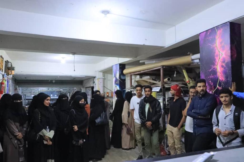 طلبة قسم الجرافيكس والملتيميديا ينفذون زيارة ميدانية إلى المطابع اليمن الحديثة وشركة الباز للدعاية والإعلان