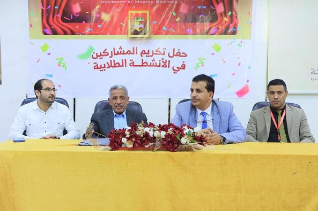 جامعة العلوم الحديثة تكرم طلابها المشاركين في المسابقات التنافسية على مستوى الجامعات اليمنية، وتخصص يوماً سنوياً لتكريم المبدعين والمتميزين