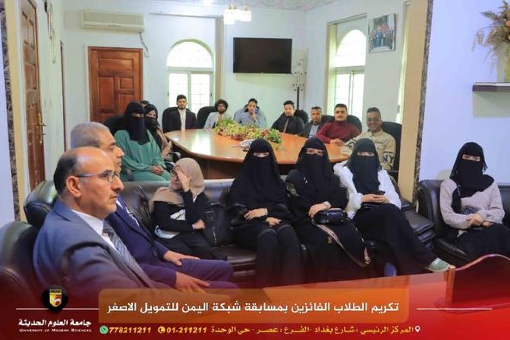 جامعة العلوم الحديثة تُكرم طلابها الحاصلين على المركزين الأول والثاني في مسابقة جائزة شبكة اليمن للتمويل الأصغر