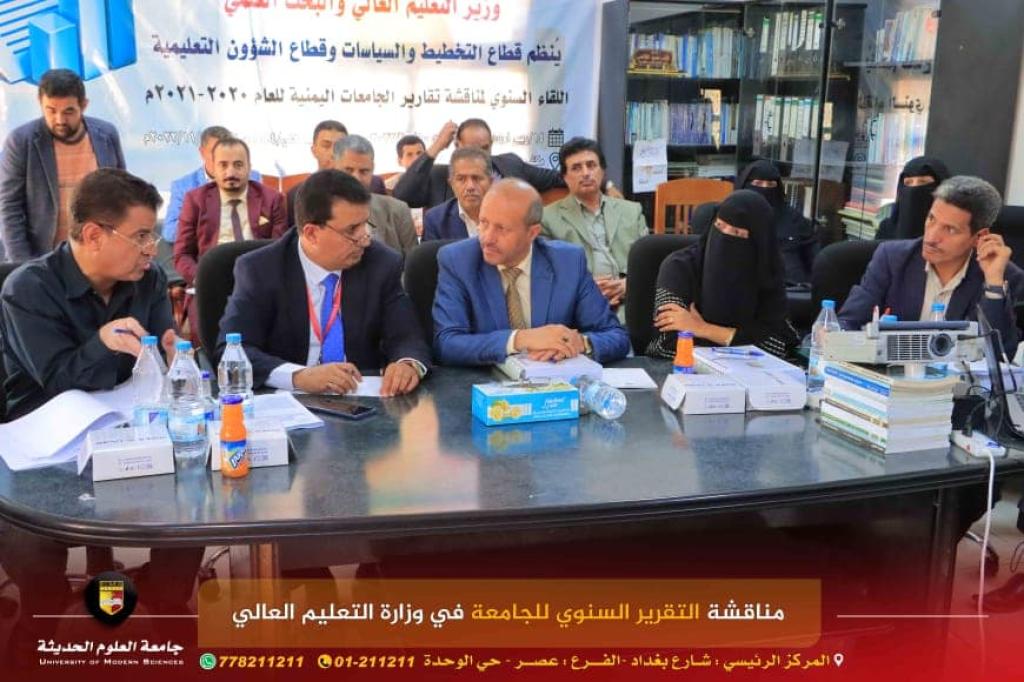 وزارة التعليم العالي والبحث العلمي تناقش تقرير الأداء السنوي لجامعة العلوم الحديثة للعام2021-2022م